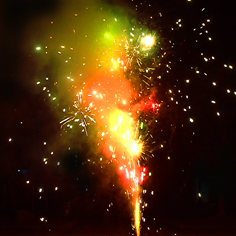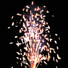 Эффект: 1. Поток серебряных искр. 2. Трещащие вспышки и красно-зеленые огни.