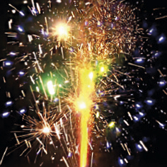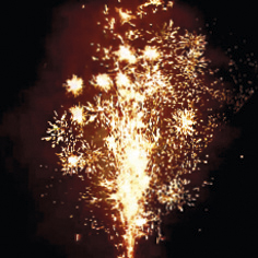 Эффект: 1. Поток золотых искр. 2. Зелено-синие огни и золотые трещащие вспышки.