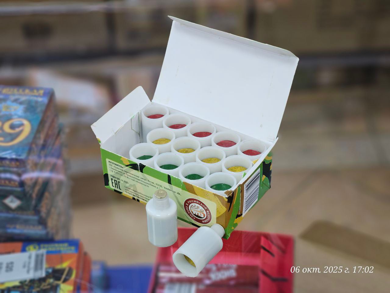 В комплект входит 15 патронов красного, желтого и зеленого огней.